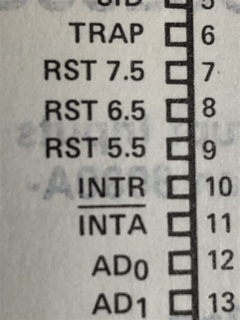 The most important is the TRAP interrupt. This is a non-maskable interrupt (NMI), meaning it cannot be disabled by the programmer. It has the highest priority and is typically used for critical events, such as a power failure or an emergency shutdown. The TRAP interrupt is edge-triggered, meaning it responds to a change in the input signal, and is very sensitive. It is triggered by a high-to-low transition on the TRAP pin. Next, there are the RST 7.5, RST 6.5, and RST 5.5 interrupts. These are maskable interrupts, meaning they can be enabled or disabled using the interrupt enable (IE) flip-flop and the enable interrupt (EI) and disable interrupt (DI) instructions. These are triggered by a rising edge on their respective input pins. They have different priorities, with RST 7.5 having the highest priority among the maskable interrupts. The 8085 responds to the highest priority interrupt first. Finally, there’s the INTR (Interrupt Request) pin. This is a general-purpose interrupt and is also maskable. External devices use INTR to request an interrupt, and the 8085 will acknowledge the request if interrupts are enabled. It’s important to configure all these interrupts so that they don’t have conflicts. The programmer determines how the 8085 responds to these requests by writing the interrupt service routines (ISRs) at the respective vector addresses.