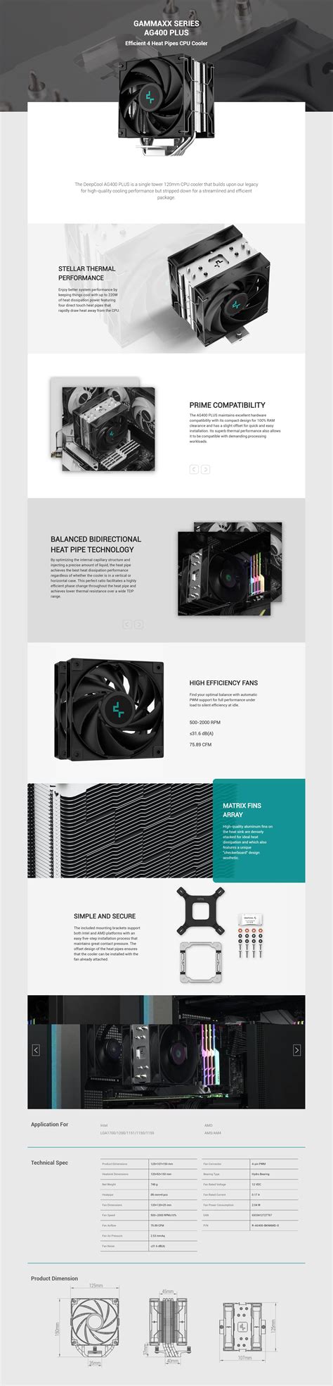 One of the key advantages of the AG400 Plus is its ease of installation. It comes with a user-friendly mounting system that supports a variety of CPU sockets, including those from Intel and AMD. This means you can easily install it on your current system or transfer it to a new build without any hassle. Additionally, the cooler’s compact design ensures it won’t interfere with other components in your case, such as RAM modules or graphics cards. The AG400 Plus is also designed to operate quietly, thanks to its optimized fan design and speed control. This ensures that your system remains cool without generating excessive noise, making it ideal for both gaming and productivity tasks. Overall, the AG400 Plus is a versatile and effective CPU cooler that offers excellent value for its price.