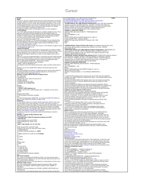 Finally, when you’re done with all the rows, or if you need to exit the loop early, you must CLOSE the cursor: CLOSE my_cursor; . This releases the resources associated with the cursor and cancels any active locks it might hold. It’s crucial to close your cursors to prevent resource leaks and potential deadlocks. Failing to close cursors is a common mistake that can lead to performance degradation and unexpected behavior in your application. Always remember to close them when you’re finished!