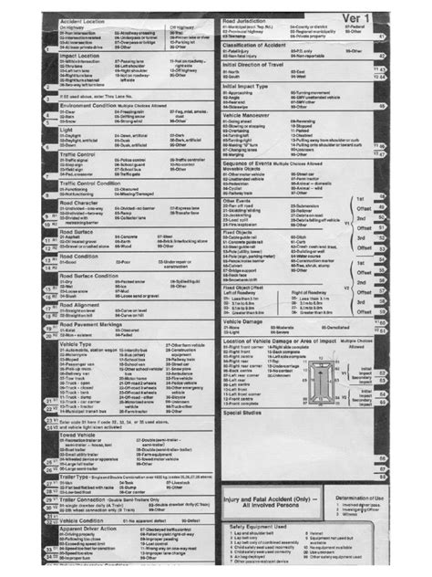 • Location Codes: These help pinpoint the exact location of the accident.