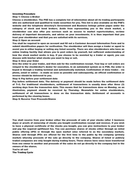 Alright, so you’re interested in PSE investing? Awesome! The next step is to actually start the process of opening a trading account. The good news is that it’s generally a straightforward process. You’ll need to choose a brokerage firm. There are several reputable brokerage firms operating in the Philippines. Each firm offers different services, fees, and trading platforms, so it’s important to do your research and find one that suits your needs. Some popular options include COL Financial, First Metro Securities, and BDO Nomura Securities. Once you’ve chosen a brokerage firm, you’ll need to fill out an application form and provide the required documents. This typically includes a valid government-issued ID, proof of address, and your Tax Identification Number (TIN). The brokerage firm will guide you through the process, and they can answer any questions you may have. After your account is approved, you’ll need to fund it. This is typically done through bank transfer or online payment methods. Once your account is funded, you’re ready to start trading! But, hold on a second! Don’t just jump in and start buying stocks without doing your homework. Research is key to successful investing. Start by researching different companies. Look at their financial statements, including their revenue, earnings, and debt levels. Analyze their business models, competitive advantages, and growth prospects. Check out their management teams and assess their track records. Use resources like the PSE website, company reports, and financial news websites to gather information. Then, start by understanding financial ratios. Learn about common ratios like the price-to-earnings ratio (P/E), price-to-book ratio (P/B), and debt-to-equity ratio (D/E). These ratios can provide valuable insights into a company’s valuation and financial health. Read financial news and market analysis. Stay informed about market trends, economic indicators, and industry developments. Follow reputable financial news sources and analysts to get different perspectives on the market. Consider using technical analysis tools. Technical analysis involves analyzing price charts and other market data to identify potential trading opportunities. Learn about chart patterns, moving averages, and other technical indicators.