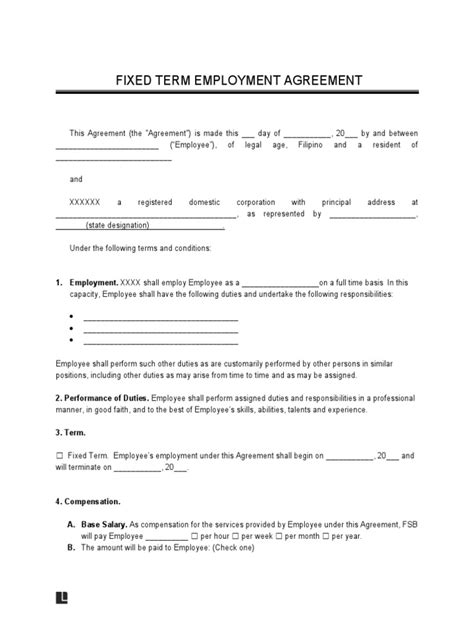 • Fixed Term: The employment duration is predetermined, clearly stating the start and end dates. This eliminates ambiguity and sets clear expectations.