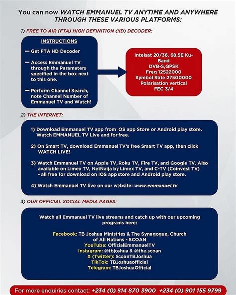 So there you have it, folks! We’ve covered the ins and outs of Emmanuel TV frequency , why it matters, how to find it, and even how to tune it in. The key takeaway here is that while the core message of faith and hope on Emmanuel TV remains constant, the technical details like frequencies and satellite positions can sometimes shift. It’s a dynamic landscape! To make sure you never miss out on a powerful sermon from Prophet TB Joshua, an inspiring testimony, or a live broadcast, the best strategy is to stay connected with official channels. Regularly check the official Emmanuel TV website for any updates on their broadcast information. Following their social media pages can also be a great way to catch announcements about frequency changes or new broadcasting arrangements. Online satellite enthusiast communities are also invaluable resources – these guys are often the first to share verified frequency updates. Don’t be afraid to ask questions in these forums if you’re unsure about anything. Remember, the goal is to ensure that the uplifting content from Emmanuel TV can reach you without interruption. By staying informed and being proactive about checking for updates, you can guarantee that your satellite receiver is always tuned to the right frequency, keeping you connected to a source of spiritual strength and encouragement. It’s all about making sure that the channel that brings so much positivity into people’s lives remains accessible. So keep those receivers updated and stay blessed!