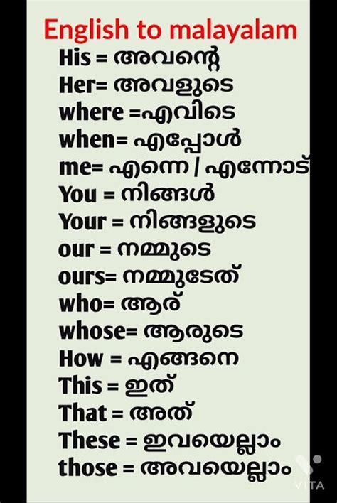 English Words Explained In Malayalam