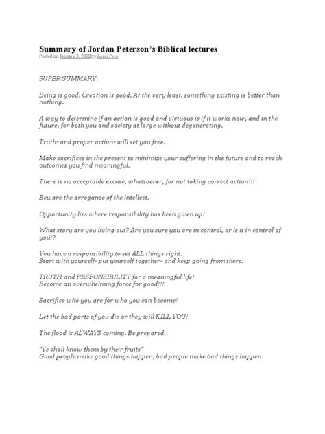 One of the core themes that consistently surfaces in Jordan Peterson’s lectures is the concept of personal responsibility . He really hammers home the idea that individuals have a significant role to play in shaping their own lives and the world around them. This isn’t about blaming people, but rather empowering them. He argues that by taking ownership of our actions, our beliefs, and our futures, we can overcome the chaos and suffering that are inherent parts of the human experience. Think about it, guys – how often do we feel like things are just happening to us? Peterson’s message is a powerful counter-narrative, urging us to step up and be the architects of our own destiny. He often uses the metaphor of confronting the dragon of chaos, suggesting that we must face our fears and uncertainties head-on to achieve growth and meaning. This involves setting goals, speaking truthfully, and tidying up our own rooms, both literally and metaphorically. It’s about incremental improvement, day by day, making conscious choices that align with our values and aspirations. This focus on individual agency is incredibly empowering, offering a path forward even when the world seems overwhelming. The emphasis on truth is another pillar of his work. Peterson frequently discusses the importance of speaking truthfully, not just to others, but to yourself. He posits that a life lived in deception, even self-deception, is a life fundamentally undermined. By confronting reality as it is, and articulating it honestly, we build a stronger foundation for ourselves and our interactions. This commitment to truth, he suggests, is not always easy, but it’s essential for psychological health and societal well-being. His lectures often dissect the dangers of ideological possession, where rigid belief systems can blind individuals to reality and lead to destructive outcomes.