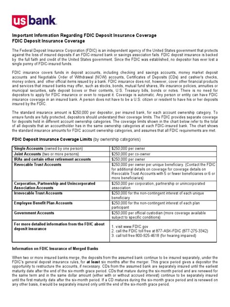 In conclusion, understanding the maximum FDIC insurance coverage per depositor per institution is essential for protecting your hard-earned money. The standard coverage limit is $250,000 per depositor, per insured bank, but there are strategies to increase your coverage, such as diversifying your deposits across multiple banks and utilizing different account ownership categories. By staying informed about FDIC regulations and avoiding common misconceptions, you can make informed decisions about your banking relationships and ensure your deposits are adequately protected. Remember, the FDIC is there to safeguard your money and maintain confidence in the U.S. financial system, but it’s up to you to understand the rules and take proactive steps to maximize your coverage. Be smart, stay informed, and keep your deposits safe!