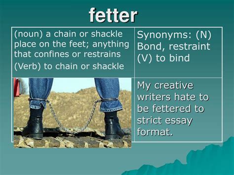 At its heart, the word fetter refers to a chain or restraint, typically used to bind the feet of a prisoner or animal. Think of it as something that prevents free movement, restricting someone or something from escaping or acting freely. In a broader sense, it can also mean to restrict or impede the progress or development of something. It’s all about limitation, about being held back. When we talk about the meaning of fetter in Kannada , we’re looking for words that capture this essence of restraint, confinement, and restriction. It’s not just a physical chain; it can also be metaphorical, representing anything that binds a person’s spirit, ambition, or potential. Imagine someone feeling held back by societal expectations, fear, or even their own self-doubt – these are all forms of fetters, albeit invisible ones. The struggle against these constraints is a universal human experience, and understanding the Kannada equivalents can offer a deeper appreciation of this concept.