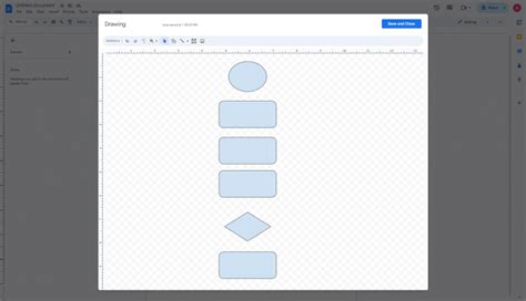 Once you’re happy with your flowchart, it’s time to save it and insert it into your Google Doc. Click on the “Save and Close” button in the top right corner of the drawing canvas. This will save your flowchart and insert it into your document. You can then resize and reposition the flowchart within the document as needed. If you need to make changes to the flowchart later, simply double-click on it to reopen the drawing canvas.
