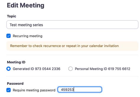 When you are in the scheduling window (either on the desktop app or web portal) and you’ve selected to generate a new Meeting ID automatically, look for the ‘Passcode’ field. You’ll see a default code there. Simply click into the field and delete the existing code. Then, type in your desired passcode. It needs to be between 4 and 10 digits. Make it something memorable for you and easy to communicate to your attendees, but still strong enough to deter unwanted guests. Once you’ve entered your custom passcode, just proceed with saving or scheduling your meeting. That’s it! Your meeting will now use your chosen passcode.