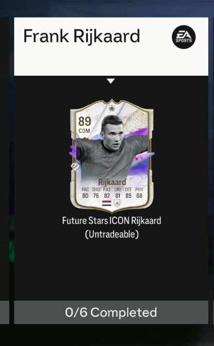 • Squad Building Challenges (SBCs): EA Sports occasionally releases SBCs that reward players with Icon cards. These challenges require you to submit specific squads that meet certain criteria (e.g., team rating, chemistry, player nationalities). Completing an SBC that rewards Rijkaard is a guaranteed way to add him to your squad, but these challenges can be expensive and time-consuming.