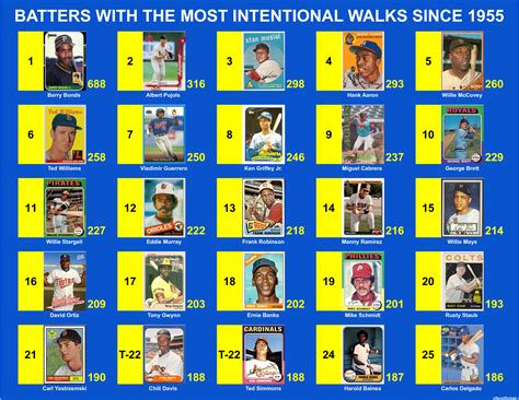 • Card Collecting’s Perspective: Discussions within the IIOSC community might center on players with high intentional walk totals, focusing on their career stats, their impact on the game, and whether their cards are more or less valuable based on their walk totals. Collecting brings a historical perspective.