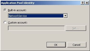 • Identity: Specifies the security account that the worker process runs under. Common options include ApplicationPoolIdentity, LocalService, LocalSystem, and Custom account.