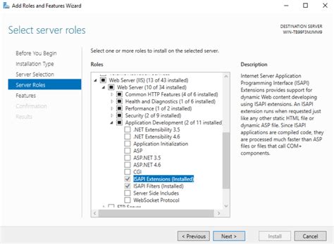 7. Confirmation: Review your selections and click “Install”. The installation process will begin, and you can monitor its progress in Server Manager.