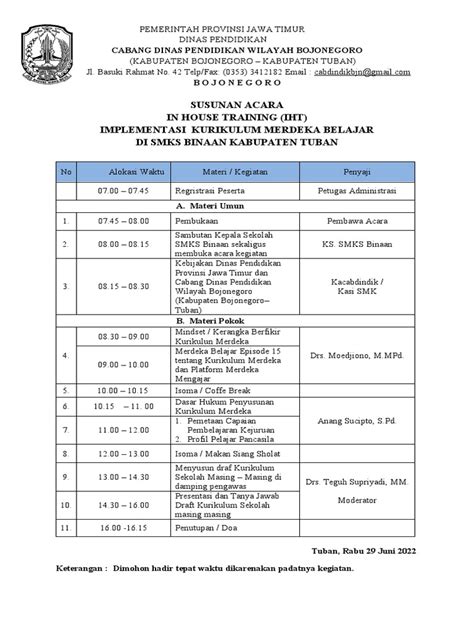 • Content: What topics will be covered in the training? This could include things like understanding the principles of Kurikulum Merdeka, developing student-centered learning activities, and using technology in the classroom.