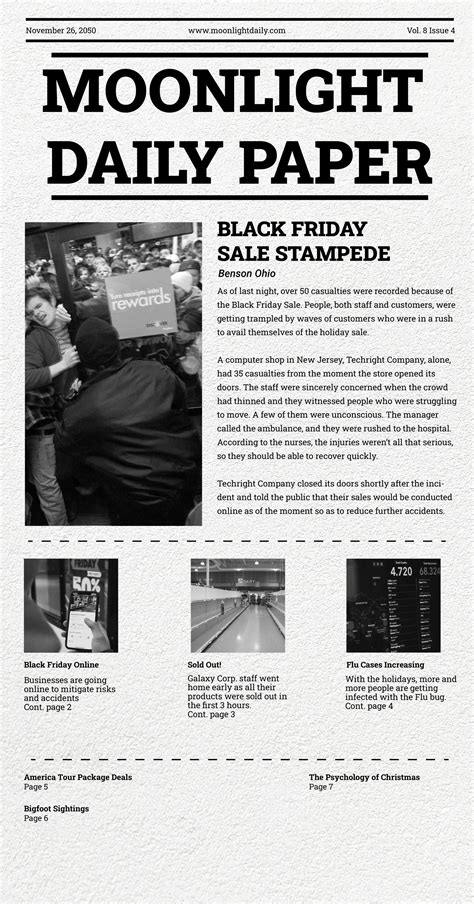 Okay, so you’ve got your text sorted, but a newspaper isn’t just words, right? Visuals are super important for breaking up text, adding interest, and conveying information quickly. The IpseiCouplese newspaper template gives you the structure, but you bring the eye-catching images! When selecting photos or graphics, think about relevance and quality. Does the image actually add to the story? Is it high-resolution enough to look good? Blurry or pixelated images scream ‘amateur hour,’ and nobody wants that. The IpseiCouplese template often has designated image boxes or areas, which make placement straightforward. However, don’t be afraid to adjust these if necessary. Consider the rule of thirds for composition – placing your subject off-center often creates a more dynamic and engaging image. Think about the captions, too. They should be informative and concise, providing context without telling the reader what they can obviously see. Short, punchy captions often work best. Another great technique is using infographics or charts for data-heavy stories. Instead of a wall of numbers, a well-designed visual can make complex information instantly understandable. The IpseiCouplese template might not include specific infographic tools, but you can easily create them using other software and then import them. Think about how images interact with the text. Do they break up long blocks of text effectively? Are they placed near the relevant information? Sometimes, a full-page photo spread can make a huge impact, especially for feature stories or major news. Other times, smaller, well-placed photos can add visual texture throughout the pages. Don’t forget about consistency in style. If you’re using mostly black and white photos, stick with that. If you’re incorporating color, ensure it complements your overall design. The IpseiCouplese newspaper template provides the framework, but your visual choices bring your newspaper to life. High-quality, relevant, and well-placed visuals are essential for keeping your readers engaged and making your publication look professional and polished. Remember, a picture is worth a thousand words, so choose them wisely, guys!
