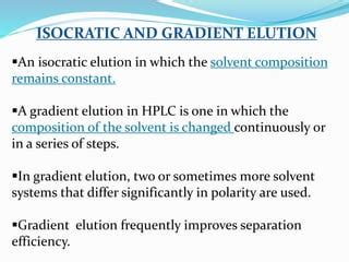 Now that we know what isocratic elution is, let’s compare it to its counterpart: gradient elution. The main difference boils down to how the solvent composition changes over time. With isocratic elution , as we’ve discussed, the solvent composition remains constant throughout the entire chromatographic run. This is like driving on a straight, flat road at a constant speed. Simple and steady! On the other hand, gradient elution involves gradually changing the solvent composition during the separation. Think of it as driving up a hill where the steepness changes as you go. In gradient elution, you might start with a weak solvent (one that doesn’t dissolve your compounds very well) and gradually increase the proportion of a strong solvent (one that dissolves your compounds more effectively). This change helps to elute compounds that are more strongly retained on the stationary phase.