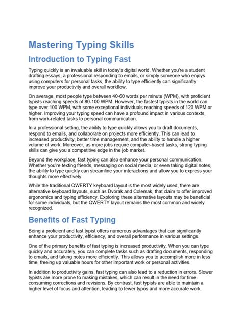 2. Rushing: Speed is important, but accuracy should always come first. Slow down and focus on hitting the right keys. Trying to type too quickly often leads to more errors and ultimately slows you down as you spend time correcting mistakes. Focus on maintaining a steady and consistent pace rather than rushing through the text. As your accuracy improves, your speed will naturally increase. Remember, the goal is to type efficiently, not just quickly.