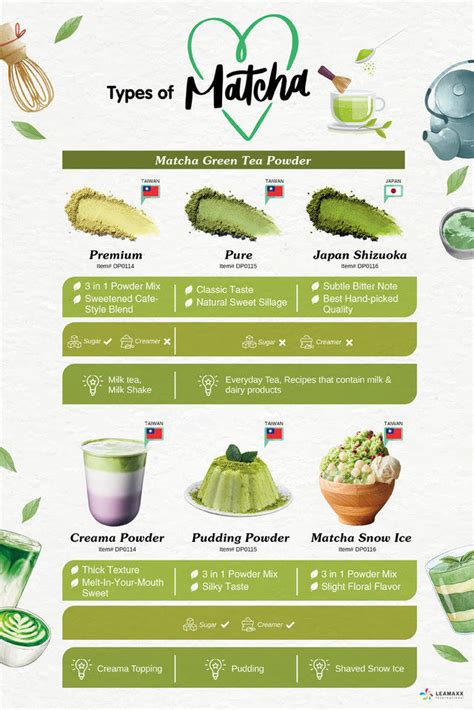 Next, we have the Iced Matcha Green Tea . This recipe is super refreshing and perfect for a hot day. You’ll need: 1 teaspoon of matcha powder, 2 ounces of hot water, 8 ounces of cold water, ice cubes, and sweetener to taste. Whisk the matcha powder with the hot water until smooth. Fill a glass with ice cubes, pour in the cold water, and add the matcha mixture. Sweeten to taste and stir well. You can also add a slice of lemon or lime for extra flavor. If you’re feeling adventurous, try the Matcha Mint Lemonade . This is a unique and flavorful twist on traditional lemonade. You’ll need: 1 teaspoon of matcha powder, 2 ounces of hot water, 1 cup of cold water, 1 4 cup of lemon juice, 2 tablespoons of mint syrup (or fresh mint leaves), and ice cubes. Whisk the matcha powder with the hot water until smooth. In a shaker, combine the cold water, lemon juice, mint syrup, and matcha mixture. Add ice cubes and shake well. Pour into a glass and garnish with a sprig of mint. For a healthy and energizing breakfast, try the Matcha Smoothie . You’ll need: 1 teaspoon of matcha powder, 1 2 cup of frozen berries, 1 2 banana, 1 2 cup of spinach, 1 2 cup of almond milk, and 1 tablespoon of chia seeds. Combine all ingredients in a blender and blend until smooth. Pour into a glass and enjoy immediately. These are just a few ideas to get you started, but the possibilities are endless. Don’t be afraid to experiment with different ingredients and flavors to create your own unique matcha creations. Whether you’re a matcha newbie or a seasoned pro, there’s always something new to discover in the world of matcha drinks. Happy sipping!