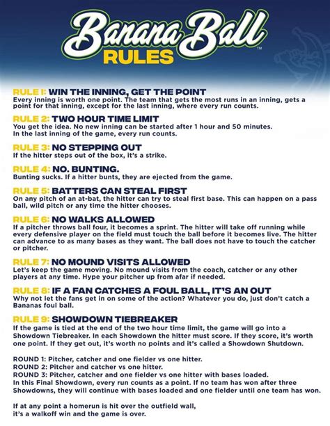 Alright guys, let’s dive into the official Banana Ball rules! If you’re new to the scene or just need a refresher, you’ve come to the right place. Banana Ball, that wild and wonderful variation of baseball, has its own unique set of guidelines that make it super fun and a bit chaotic (in the best way possible, of course!). We’re going to break down everything you need to know, from how to score to what happens when things get a little too banana-ball. So grab your glove, maybe a banana for energy, and let’s get this game started!