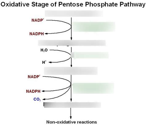 Alright, let’s zoom in on the oxidative phase of the PPP. This is where the pathway really gets down to business, churning out NADPH and starting the ball rolling. The oxidative phase begins with glucose-6-phosphate (G6P), which is a common product of the first steps of glycolysis or can be formed from the breakdown of glycogen. The first enzyme in this stage is glucose-6-phosphate dehydrogenase (G6PD), which is a rate-limiting enzyme. It catalyzes the oxidation of G6P to 6-phosphoglucono-δ-lactone and generates the first molecule of NADPH. This is a crucial step! NADPH is used in many different metabolic processes, and the amount generated by the PPP can vary according to cellular needs. The next reaction involves the enzyme lactonase, which opens the lactone ring to form 6-phosphogluconate. Then, in the third and final step of the oxidative phase, 6-phosphogluconate dehydrogenase performs oxidative decarboxylation, converting 6-phosphogluconate to ribulose-5-phosphate and releasing a molecule of carbon dioxide. Another molecule of NADPH is also produced in this step.