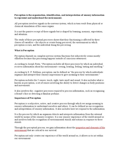 Perception is much more than just seeing or hearing; it’s the cognitive process by which we interpret and organize sensory information to understand our environment. It’s how our brains take raw data from our senses—like light waves, sound vibrations, chemical molecules, or pressure—and transform them into meaningful experiences. Think about it , guys: Without perception , the world would just be a chaotic jumble of unrelated stimuli. This incredible mental faculty allows us to recognize faces, understand speech, navigate complex environments, and even appreciate art or detect danger. It’s an active, constructive process, not just a passive reception of information. Our brains are constantly working to filter, select, fill in gaps, make predictions, and construct a coherent picture of reality based on our past experiences, current expectations, and even our immediate emotional state. So, when we talk about perception , we’re really talking about the intricate dance between our physical senses and our psychological interpretation system. This complex interplay ensures that our personal understanding of perception is uniquely ours, shaped by a lifetime of interactions, learning, and cultural influences. It allows us to go beyond mere sensory input and build a rich, textured, and interpretable world. Understanding this fundamental aspect helps us grasp why individual experiences can vary so widely, even in seemingly identical situations, making it a cornerstone of psychology and everyday comprehension.