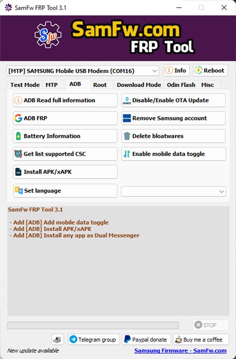 • ADB Mode Support: The tool supports ADB (Android Debug Bridge) mode, allowing for advanced operations and direct communication with the device. ADB mode is essential for many Android debugging and modification tasks, and the SamFW tool leverages it to perform FRP bypass and other functions. This support ensures compatibility with a wide range of Samsung devices.