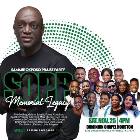 Let’s dive into the inspiring life of Sammie Okposo , a true icon in the gospel music scene! This article explores his journey, achievements, and the lasting impact he had on the world. Get ready to discover the story of a man whose music touched countless lives and whose legacy continues to inspire generations. We will cover everything from his early beginnings and rise to stardom to his challenges, triumphs, and significant contributions to the gospel music industry. Whether you’re a long-time fan or just discovering his music, this biography offers a comprehensive look at the life and times of Sammie Okposo . Join us as we celebrate the remarkable journey of this gospel legend, whose passion, talent, and unwavering faith left an indelible mark on the hearts of many. Let’s get started, guys, and explore the incredible story of Sammie Okposo!
