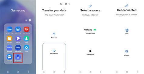 2. Pilih Metode Transfer : Buka aplikasi Smart Switch di kedua ponsel, dan pilih metode transfer yang ingin kalian gunakan. Pilihan yang tersedia adalah: