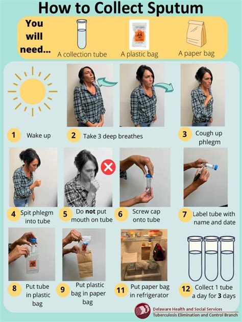 Okay, let’s get into the nitty-gritty of the sputum collection procedure . This is where we break down the steps, making sure you know exactly what to do. The process involves several key stages to ensure a quality sample is obtained. First things first, preparation is key! You gotta gather all your materials: a sterile container with a tight-fitting lid, gloves, and any necessary PPE (personal protective equipment). The patient is the star of the show, so you need to explain the procedure clearly. Make sure they understand what’s going to happen and why it’s important. This conversation helps to gain their cooperation and reduce anxiety. Ask the patient to rinse their mouth with water – this helps to remove any food particles or surface bacteria that could contaminate the sample. This is an important step to ensure the integrity of the sample. Then, it’s time for the cough. We’re looking for a deep, productive cough – not just a little tickle in the throat. You want to get that stuff from deep in the lungs. Ideally, the patient should take several deep breaths and then cough forcefully. Ensure the patient coughs deeply from the chest, bringing up secretions from the lungs rather than from the mouth or throat. This technique will ensure the sample truly represents the respiratory tract. Collect the sputum directly into the sterile container. It’s really important to avoid saliva, which can dilute the sample and mess up the results. The goal is to get a good, thick sample. Once you’ve collected the sample, seal the container tightly. Label it with the patient’s name, the date, and the time of collection. Make sure the sample reaches the lab as soon as possible, ideally within an hour, to ensure accurate results. Prompt delivery maintains sample integrity. Clean up any spills, and dispose of the used materials correctly. It’s also crucial to document everything – the procedure performed and any relevant observations. The documentation is critical for patient records and helps to ensure the quality of the diagnostic process. Healthcare professionals must understand each step of the sputum collection procedure to ensure accurate results. Accurate and complete documentation is crucial, as this information is essential for interpretation and appropriate treatment planning.