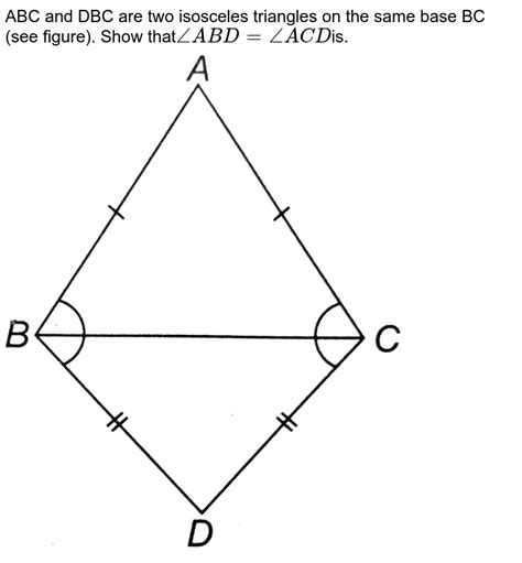 First off, let’s make sure we’re all on the same page. We have two triangles: triangle ABC and triangle DBC. The key thing here is that both of these triangles share the same base, which is the line segment BC. Think of it like two tents pitched side-by-side along the same ground line. This shared base is what ties these two triangles together and allows us to explore some interesting geometric properties. When you’re tackling geometry problems, always start by identifying the key elements – in this case, the shared base. Recognizing this shared element is often the first step in unlocking the solution and understanding the underlying relationships between the shapes. So, keep your eyes peeled for common bases, common angles, or any other shared features – they’re your best friends in geometry!