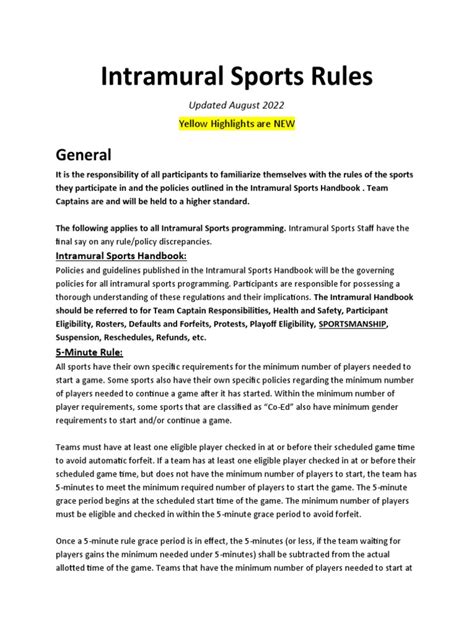 Alright, let’s get real about what happens when rules are broken. Understanding the common penalties and consequences in UF Intramural Softball is super important to keep things fair and fun for everyone. One of the most common penalties is a simple warning. This usually happens for minor infractions like arguing with an umpire or a first-time offense of a minor rule. But hey, don’t ignore it! Multiple warnings can lead to more serious consequences. Then there’s the dreaded out. A player can be called out for various reasons, like not touching a base, being tagged while not on a base, or interfering with a fielder. Accumulating outs can obviously hurt your team’s chances, so play smart! In more serious cases, a player can be ejected from the game. This can happen for things like fighting, using extremely offensive language, or repeated unsportsmanlike conduct. Getting ejected not only means you’re out of the game, but it can also lead to further disciplinary action from the intramural sports office. Sometimes, teams can face penalties too. For instance, if a team is caught using an ineligible player, they might have to forfeit the game. This means the other team automatically wins. Ouch! Repeated rule violations or unsportsmanlike conduct by a team can lead to suspension from the league. No one wants that, so make sure your team knows the rules and plays fair. In extreme cases, a player or team can be banned from participating in any UF Intramural Sports activities. This is usually reserved for the most serious offenses, like repeated fighting or vandalism. To avoid penalties, make sure you and your teammates know the rules inside and out. Attend any pre-season meetings or clinics offered by the intramural sports office. If you’re not sure about a rule, ask an umpire or intramural sports staff member for clarification. It’s always better to be safe than sorry. Encourage your teammates to play with good sportsmanship and respect for the rules. A positive team attitude can go a long way in preventing penalties. If you see a teammate about to do something that could result in a penalty, speak up and remind them of the rules. Remember, the goal is to have fun and compete fairly. Penalties can ruin the experience for everyone, so do your part to keep the game clean and enjoyable. Staying informed about these penalties and consequences not only helps you avoid them but also promotes a culture of accountability and integrity within UF Intramural Softball. By understanding the potential repercussions of rule violations, you contribute to a fairer and more enjoyable experience for all participants, fostering sportsmanship and ensuring that the focus remains on healthy competition and camaraderie.