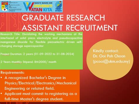 So, you’re hyped and ready to snag one of these awesome research assistant gigs at UKM for 2025 ? Awesome! Finding the right opening and nailing the application is key. First things first, start early . Don’t wait until the last minute. The academic year and project funding cycles can dictate when positions are advertised, so being proactive is your best bet. Your primary resource will be the official UKM website . Navigate to their careers or job portal. They usually list openings across various faculties and departments. Check faculty-specific websites too. Many faculties (like the Faculty of Science and Technology, Faculty of Medicine, Faculty of Engineering and Built Environment, etc.) have their own pages where they might advertise research positions directly, especially those funded by specific grants. Network, network, network! This is arguably the most effective method. If you’re currently a student at UKM, talk to your lecturers and professors. Let them know you’re interested in research assistant opportunities. They are often the first to know when funding becomes available or when they need an RA for their projects. Attend departmental seminars and research talks – it’s a great way to learn about ongoing research and meet potential PIs. If you’re external, try reaching out directly to professors whose research aligns with your interests. Craft a targeted CV/Resume . Don’t use a generic one. Highlight relevant coursework, any previous research experience (even small projects count!), technical skills, and any publications or presentations. Tailor it to each specific position you apply for. Write a compelling cover letter . This is your chance to shine! Explain why you’re interested in that specific research project and that specific professor’s work. Clearly articulate how your skills and experiences make you a strong candidate. Show genuine enthusiasm and understanding of their research goals. Be prepared for interviews . If your application gets noticed, you’ll likely be called for an interview. This could be with the PI, other lab members, or a departmental committee. Be ready to discuss your CV, your research interests, your understanding of the project, and why you’re a good fit. Prepare some thoughtful questions to ask them, too – it shows you’re engaged and serious. Look out for specific programs . UKM might have dedicated research internship or assistantship programs. Keep an eye on announcements related to these. Don’t be discouraged if you don’t see a perfect fit immediately. Research is dynamic, and new opportunities arise constantly. Keep checking, keep networking, and keep refining your application materials. Your determination will pay off, and you’ll be well on your way to securing a fantastic research assistant role at UKM in 2025!