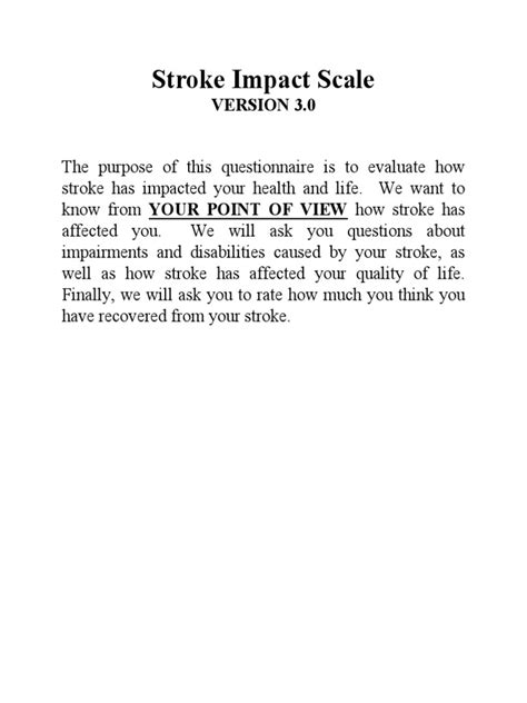 Alright, first things first, let’s chat about the iStroke Impact Scale itself. Think of this scale as a really thorough questionnaire designed to capture how a stroke has affected a person’s life across a bunch of different areas. It’s not just about physical stuff like walking or moving your arms, although that’s a big part of it. This awesome scale goes way beyond that, looking at things like communication, your emotional well-being, your memory, and even how you cope with everyday tasks. The goal here is to get a holistic picture of a patient’s recovery. It’s developed to be comprehensive, covering physical, cognitive, and emotional domains that are often impacted by a stroke. The questions are designed to be answered by the patient themselves, or sometimes by a caregiver if the patient can’t fully complete it, giving us direct insight into their lived experience. This is super important because recovery isn’t just about measurable physical gains; it’s also about how someone feels and functions in their daily life. The iStroke Impact Scale aims to capture these subjective experiences alongside objective measures. It’s a dynamic tool, meaning it can be used at different stages of recovery, from shortly after the stroke to months or even years down the line. This allows us to track changes over time and see how interventions are making a difference. For clinicians, this provides a standardized way to assess a patient’s functional status and quality of life, which is invaluable for tailoring rehabilitation programs. It helps identify specific areas where a patient might be struggling, allowing for targeted therapies and interventions. It’s essentially a roadmap for recovery, showing us where the patient is, where they want to go, and how we can help them get there. The scale is structured into different domains, each focusing on specific aspects of life impacted by stroke, such as mobility, activities of daily living, communication, emotional well-being, and social participation. Each item is scored, and these scores are then aggregated to provide an overall picture of the individual’s functional status and quality of life. The developers have put a lot of work into ensuring its reliability and validity, meaning that when you use this scale, you can be confident that the results are accurate and meaningful. This rigorous development process is what makes the iStroke Impact Scale a trusted tool in stroke research and clinical practice worldwide, helping us to better understand the multifaceted nature of stroke recovery and its impact on individuals.