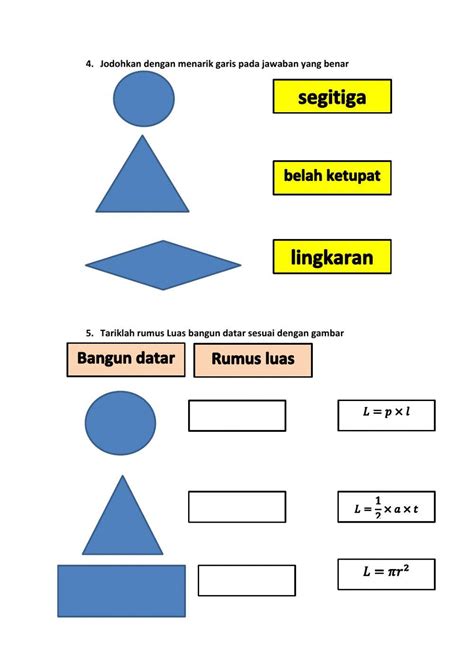 Alright, let’s dive into the fun part – exploring some basic geometric shapes and how they might be represented using Sandi Bangun Datar ! Remember, the “code” can take various forms, but the goal is always to capture the essential properties of the shape. Let’s start with the square. A square is defined by four equal sides and four right angles. A simple Sandi Bangun Datar representation might involve a symbol that indicates “four equal sides” and another symbol that indicates “four right angles.” Alternatively, you could use a diagram where the sides are labeled with the same variable (e.g., ’s’) and the angles are marked with the right angle symbol. For a rectangle, which has four right angles but only opposite sides are equal, the code would need to differentiate it from a square. You might use two different variables to represent the lengths of the sides (e.g., ‘l’ for length and ‘w’ for width) while still indicating the presence of four right angles. Now, let’s move on to triangles. Triangles are incredibly versatile, and their Sandi Bangun Datar representation can vary depending on the type of triangle. For an equilateral triangle (three equal sides and three equal angles), the code could be similar to that of a square, indicating “three equal sides” and “three equal angles.” For an isosceles triangle (two equal sides and two equal angles), you’d need to specify which sides and angles are equal. And for a scalene triangle (no equal sides or angles), you’d simply list the lengths of the three sides and the measures of the three angles. Circles are unique because they’re defined by a single property – the radius. Therefore, the Sandi Bangun Datar representation of a circle could simply be the symbol ‘r’ to represent the radius. You might also include a symbol for Pi (π) since it’s fundamental to calculating the circle’s circumference and area. These are just a few examples, and the specific “code” used can be tailored to the specific problem or context. The key is to choose symbols and notations that clearly and concisely convey the essential properties of the shape.