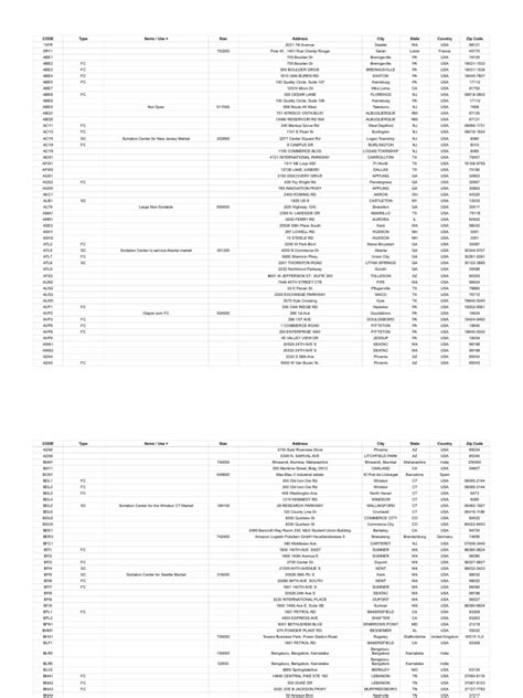 Specific Amazon Facilities and Their Zip Codes (If Applicable)